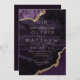 Carte mariage foncé moderne violet avec poussière d'or sur avec un effet d'encre or (l'or est un effet numérique, pas un vrai papier !) et calligraphie moderne. Invitation classique et élégante, simple et moderne.