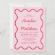 Invitation Mariage moderne Wavy rose et rouge Retro Squiggle