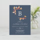Cet automne laisse bleu marine et le faire-part de mariage monogramme bordeaux est parfait pour un mariage d'octobre. Le design rustique moderne présente de superbes feuilles d'automne aquarelle peintes à la main dans des tons colorés de jaune, d'orange brûlé et de rouge bordeaux qui s'affichent sur un arrière - plan bleu marine. Personnalisez la carte avec votre dernier monogramme initial.