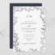Invitation Mariage Monogramme Élégant bleu marine à feuilles