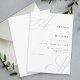 Design chic et moderne avec un bord, cette faire-part de mariage minimaliste moderne dispose de beaux monogrammes de calligraphie de la mariée et du marié sur des coins alternatifs. Une mise en page de texte soignée affiche les détails de votre mariage avec un look classique propre avec des initiales gris pâle et du texte noir sur un arrière - plan blanc. Remplacez l'exemple de texte par vos informations. Vous pouvez déplacer vos initiales légèrement à gauche ou à droite, vers le haut ou vers le bas afin de les adapter à leur meilleur affichage dans ce format de conception. Les monogrammes sont les meilleurs lorsqu'ils se détachent légèrement des bords. Modifiez le libellé de l'invitation pour qu'il corresponde à votre style et à vos préférences personnelles.