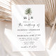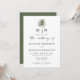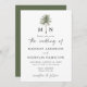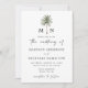 Invitations tropicales de mariage avec vos initiales monographiques séparées par une seule illustration de palmier en haut de l'invitation. Personnalisez le mariage monogramme palmier invite avec vos noms et détails mariages en lettres noires avec un script moderne écrit à la main accusant le design. La simple invitation de mariage tropicale se retourne pour montrer un arrière - plan vert solide. Conçu pour coordonner avec notre collection Minimal Palm Tree mariage.