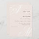 Design chic et moderne avec un bord, cette faire-part de mariage minimaliste moderne dispose de beaux monogrammes de calligraphie de la mariée et du marié sur des coins alternatifs. Une mise en page de texte soignée affiche les détails de votre mariage avec un look classique propre avec de grandes initiales blanches et du texte noir sur un arrière - plan rose vif et joliment doux. Remplacez l'exemple de texte par vos informations. Vous pouvez déplacer vos initiales légèrement à gauche ou à droite, vers le haut ou vers le bas afin de les adapter à leur meilleur affichage dans ce format de conception. Les monogrammes sont les meilleurs lorsqu'ils se détachent légèrement des bords. Modifiez le libellé de l'invitation pour qu'il corresponde à votre style et à vos préférences personnelles.