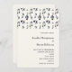 Faire-part de mariage avec un thème musical. Un motif avec clé à trois, clef basse et autres symboles musicaux.