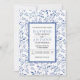 Modèle feuille moderne bleu indigo. Cette invitation de mariage rectangulaire comporte une bordure faite d'un motif de feuilles et votre formulation dans un cadre blanc avec un contour de galets en indigo.