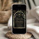 Éblouissez vos invités avec cette élégante invitation de mariage islamique mettant en vedette de beaux motifs d'art en ligne avec des papillons en or et "Bismillah" en calligraphie arabe. Il comprend également le code QR pour RSVP en ligne ou l'emplacement du lieu au dos de la carte. Ajoutez simplement les détails de votre événement sur ce modèle facile à utiliser pour en faire une invitation unique.