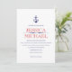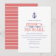 Mariage nautique Marine Bleu Nautique Red Stripes invitations personnalisées mariage. Une ancre bleu marine située au sommet de cette invitation de mariage de plage avec des rayures horizontales rouges nautiques à l'arrière de l'invitation. Vous pouvez modifier la couleur de la ligne horizontale rouge en cliquant sur "Customiser" > modifier > arrière - plan (choisissez une couleur et cliquez sur terminé).
