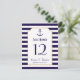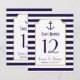 Invitation Mariage nautique Navy & Ancres à rayures blanches