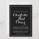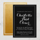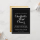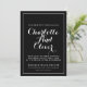 Ajoutez une ambiance élégante et moderne à votre faire-part de mariage avec un style de calligraphie de script swash sur un arrière - plan noir de type blanc et de superposition de bordure.