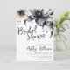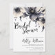 Conception de douche de mariée moderne, mignonne et simple avec des fleurs en noir et blanc. Un look classique mais fantaisiste avec des fleurs noires, grises et crème et des polices noires. Modifiez tout le texte avec vos propres informations. Que vous recherchiez un style floral classique, une ambiance bohème ou un style métropolitain moderne et luxueux, cela peut convenir. Invitation chic et élégante de douche de mariée florale noire et blanche.