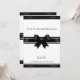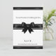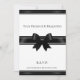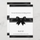 Un faire-part de mariage noir et blanc avec un grand arc noir et un ruban noir sur un arrière - plan blanc solide avec vos détails, y compris un RSVP en ligne.