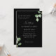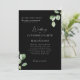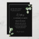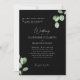 Faire-part de mariage à eucalyptus noir et blanc. Arrière - plan noir. Les deux ensembles de parents sont répertoriés.