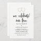 L'élégante faire-part de mariage minimaliste est ornée d'une typographie noire moderne, sertie contre un arrière - plan blanc et de jolis coeurs en faux or.