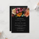 Cet élégant design d'invitation de mariage présente de magnifiques fleurs d'automne sur un arrière - plan noir avec typographie classique. Ce design est le choix idéal pour un mariage rustique mais élégant de fin d'été ou d'automne.
