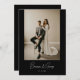 Mariage noir moderne Elopement photo & Réception Invitation. Customisez avec une photo de mariage préférée, les noms de mariée et de mariée en lettres de script élégantes, et votre date de mariage sur le devant, et ajoutez tous les détails supplémentaires de l'élévation et du mariage à l'arrière de la carte.