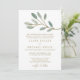 Cette carte de faire-part de mariage formelle à veine dorée à eucalyptus est parfaite pour un mariage élégant. Le design simple et somptueux présente une parties scintillant en faux or superposant les branches de feuilles verts d'olivier. Remarque : Ce design ne comporte pas de véritable parties scintillant en or. C'est un graphisme de haute qualité fait pour ressembler à un shimmer d'or.