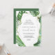 Cette carte de faire-part de mariage géométrique de palmier tropical sauvage est parfaite pour un mariage sur la plage ou à destination. Le design comprend un éventail exotique de feuilles de bananiers d'aquarelle verte, fougères, feuillage, plantes botaniques et verdure pour une sensation tropicale estivale.