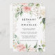 Cette faire-part de mariage à l'avant et à l'arrière vert or est parfaite pour un mariage moderne. Le design se compose d'un feuillage botanique vert et or peint à la main, avec des fleurs roses, rousses et blanches, qui ornent un cadre géométrique élégant. Enregistrez du papier en incluant plus de détails au verso de l'invitation plutôt que sur une carte de boîtier séparée.