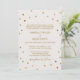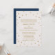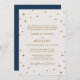 Cette carte de faire-part de mariage en or pois est parfaite pour un mariage élégant. Le design simple présente des confettis d'or chic sur un arrière - plan de champagne crémeux avec une belle calligraphie fausse feuille d'or et un fond bleu marine. Remarque : Ce design ne comporte pas de véritable feuille d'or. C'est un graphisme de haute qualité fait pour ressembler à du papier doré. Pour plus d'options de libellé faire-part de mariage, veuillez consulter la collection complète de mariages pois d'or : https://www.zazzle.com/collections/119263882092239442