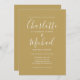 Avec des noms de style signature, cette élégante invitation de mariage peut être personnalisée avec vos informations en lettres blanches chic sur un arrière - plan d'or. Conçu par Thisisnotme©