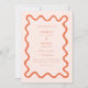 Faire-part de mariage simple et fantaisiste avec une ligne décalée dessinée à la main comme un cadre. Vous pouvez ajouter une photo au dos avec la même ligne ondulée. Couleur orange.