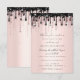 Invitation Mariage Pailleté Noir Gouttes Rose Fard de Récepti