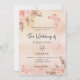 Un arrière - plan d'or rose, rustique et rustique à l'aspect rustique et rustique. Décoré de fleurs roses d'or et de rose, de roses, d'herbe de pampas et de papillons. Personnalisez et ajoutez des noms et des détails.