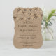 Faire-part de mariage rustique en papier imitation kraft avec brumage sur un papier kraft look arrière - plan orné de lampes à cordes.