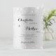 Une faire-part de mariage moderne, élégante et minimaliste. Arrière - plan à l'aspect argent faux décoré de faux parties scintillant. Personnalisez et ajoutez vos noms et détails. Lettres de couleur noire.