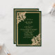 Un luxueux luxueux Faire-part de mariage fleuri à la parties scintillant d'or et vert foncé. Cette élégante invitation à la fête de mariage florale à la parties scintillant d'or et de vert de la forêt est parfaite pour toute fille glamour classe et sophistiquée. Ce design est parfait pour un événement de fête branché et élégant. Customisez ce design avec votre propre message et des informations personnalisées. Tous les dessins sont imprimés.