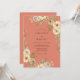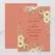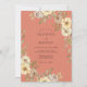 Un arrière-plan terreux rouille établit une tonalité chaleureuse pour ce design floral, mettant en valeur de délicates roses crème et des anémones jaune doux. Des feuilles peintes à l'aquarelle en vert sauge sont disposées pour créer un effet botanique luxuriant. La combinaison de riches teintes automnales et d'éléments floraux atténués offre une esthétique sophistiquée et pastorale.