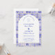 Un design intemporel bleu et blanc inspiré des porcelaines classiques de Delft et des motifs de toile de Jouy française. La bordure de carreaux patchwork combine des florales délicates, des rayures et des motifs ornementaux qui évoquent les céramiques européennes vintage. Un panneau arqué doux au centre garde la mise en page raffinée et élégante tout en permettant aux détails du motif inspiré de la porcelaine de mettre en valeur la célébration avec beauté. Parfait pour les couples qui planifient un mariage sophistiqué bleu et blanc avec un charme européen traditionnel.