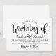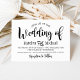 Une invitation de mariage paysage audacieuse avec un lettrage "Mariage de" en écriture brosse noire géante, disposé de manière compacte et horizontale sur un fond blanc épuré. Le format rationalisé associe des en-têtes écrits à la main avec des détails serif épurés et des lignes de date et de lieu séparées par des points. Tout le texte est entièrement modifiable pour votre célébration.