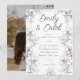 Douce et féminine, cette faire-part de mariage en noir et blanc est encadrée d'un design d'art floral. Avec son design sucré et la photo de couple au dos, vos invités auront une bonne première impression de votre événement avec le style romantique de cet invitation ! Vous avez besoin de quelque chose d'un peu différent ? Nous aimons les designs personnalisés ! Envoyez-nous un message ou envoyez-nous un courriel à stuffbystuff.shop@gmail.com
