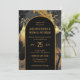 Faire-part de mariage photo abstrait unique et sophistiqué en parties scintillant métallique en faux or et noir avec script de typographie moderne et entièrement modifiable sur une forme d'arc. ++++++++++++ L'invitation est adaptée à toutes les saisons des mariages chics glam à la mode. ++++++++++++++++++++ Facile à personnaliser avec vos détails et photo à l'arrière.