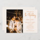 Ce faire-part de mariage photo est conçu avec des lettres brunes simples et des scripts, sur un arrière - plan beige pastel clair. Customisez avec votre propre photo, les détails du mariage et les initiales au dos.
