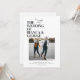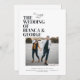 La carte design Belmont présente les noms du couple dans une grande police en gras, créant un élément visuel qui en dit long. Comme vous pouvez le voir ci-dessus et ci-dessous, les détails essentiels de la célébration sont gracieusement présentés dans une petite police serif classique. Le dos est une toile pour une autre belle photo du couple, permettant un aperçu de leur voyage partagé. Un message personnalisé, élaboré avec soin par le couple, ajoute une touche chaleureuse et intime, invitant les proches à se joindre à la célébration de leur union.