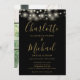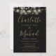 Avec de jolies lampes à cordes et des noms de style signature, cette élégante invitation de mariage peut être personnalisée avec vos détails de jour de mariage en lettres d'or chic sur un arrière - plan noir avec votre photo choisie au verso. Conçu par Thisisnotme©