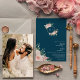 Ce monogramme bleu marine floral design de faire-part de mariage photo propose de beaux arrière - plans classiques chic de rose pastel et bleu marine avec une typographie moderne simple et une calligraphie élégante pour donner un ton sophistiqué à tout style d'événement. Chaque produit est agrémenté de roses roses roses rousses et d'hydrangées de pêche et d'ivoire, disposées avec des eucalyptus luxuriants et des feuilles vertes, ainsi que des cadres en or géométrique intemporels pour un look luxueux. Mélangez et associez cette collection de coordination pour une esthétique mariage de rêve sans effort et personnalisée pour un large éventail de styles décontractés à formels. Pour des conceptions plus coordonnées, cette conception est également disponible en blanc et noir. Comme pour tout notre design, si vous avez des questions ou des demandes spéciales, n'hésitez pas à demander.