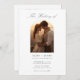 Invitation la chaleur d'un coucher de soleil et le charme de l'extérieur à votre journée spéciale avec notre "Boho Elegant Photo Faire-part de mariage." Cette invitation résume l'essence d'un mariage campagnard rustique avec son design chic minimaliste et un décor photo captivant qui en dit long sur une romance intemporelle. Les tons beiges doux se marient harmonieusement à une calligraphie élégante et manuscrite, créant une invitation à la fois élégante et accueillante. Parfait pour les couples qui planifient un mariage à destination simple ou une cérémonie en plein air intime, cette carte promet de donner le ton pour une journée remplie de fantaisie et d'amour éternel.