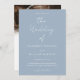 Design moderne et élégant imprimé Chic Dusty Blue & White Calligraphy Script Minimal QR Code RSVP Faire-part de mariage photo qui peut être customisé avec votre texte. Cliquez sur le bouton "Customiser" et utilisez notre outil de conception pour modifier ce modèle. Découvrez le magasin Graphic Art Design pour d'autres produits qui correspondent à ce design !