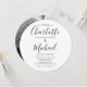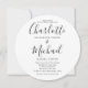Doté d'élégants noms de style signature ainsi que votre photo spéciale, ce faire-part de mariage circulaire en noir et blanc élégant peut être personnalisé avec vos détails mariages en lettrage chic. Conçu par Thisisnotme©