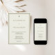 Levez votre papeterie mariage avec ce classique ivoire & or 5x7 faire-part de mariage avec typographie intemporelle et une double bordure raffinée avec une icône de palme subtile. L'avant épurée et minimaliste met en valeur les détails de votre mariage avec sophistication, tandis que le dos photo personnalisable vous permet de partager votre photo fiançailles préférée et le texte personnalisé — créant un souvenir significatif que vos invités apprécieront. Idéal pour les mariages, les complexes de luxe et les célébrations de destination, ce design allie personnalisation moderne et élégance intemporelle. Associez-vous à la collection complète Ivory & Gold Green Border Collection - y compris les cartes RSVP, les sauvegardes des dates, les menus, les programmes, les étiquettes de faveur et les cartes de remerciement - pour une suite coordonnée et transparente. Disponible aux formats 5x7 et carré.