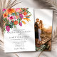 La faire-part de mariage tropicale est parfaite pour les couples qui prévoient un mariage d'été, de plage ou de destination. Cette invitation présente un design d'aquarelle magnifique et dynamique avec des fleurs tropicales dans les tons rose et orange, qui rappelle un magnifique paradis insulaire. Parmi les fleurs de l'arrangement figurent l'oiseau du paradis, la plumeria et l'hibiscus avec une photo personnalisable du couple au dos de l'invitation.