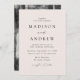 Faire-part de mariage minimaliste et moderne avec vos détails mariages en lettrage noir avec accents de script de calligraphie avec un arrière - plan beige crémeux. L'arrière du faire-part de mariage branché affiche votre photo de fiançailles vertical. Conçu pour coordonner avec notre collection de mariages Modern Elegance.