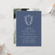 Ce faire-part de mariage photo moderne bleu foncé et blanc de la Collection Daphné est parfait pour un mariage traditionnel. Le design simple mais classique présente un monogramme de crête royale élégant et intemporel avec des fleurs et de la verdure entourant les initiales du couple. Personnalisez le dos de votre invitation de mariage avec votre photo fiançailles préférée.