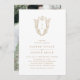 Cet élégant faire-part de mariage photo classique en or et blanc de la Collection Daphné est parfait pour un mariage traditionnel. Le design simple mais classique présente un monogramme élégant et intemporel de crête ornée de fleurs et de verdure entourant les initiales du couple. Personnalisez le dos de votre invitation de mariage avec votre photo fiançailles préférée.