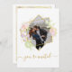 Faire-part de mariage aux délicates fleurs d'aquarelle et aux accents dorés. Personnaliser avec photo sur le devant et détails sur le dos