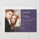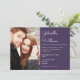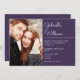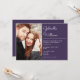 Faire-part de mariage de script moderne avec votre photo spéciale et détails de célébration sur un arrière - plan violet. Conçu par Thisisnotme©