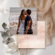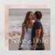 Une police de typographie audacieuse très moderne forme l'expression classique Save The Date sur le devant avec un motif abstrait d'aquarelle de corail sur le dos. Customisez facilement avec votre photo, les détails du mariage et l'URL du site Web du mariage à l'avant et à l'arrière.